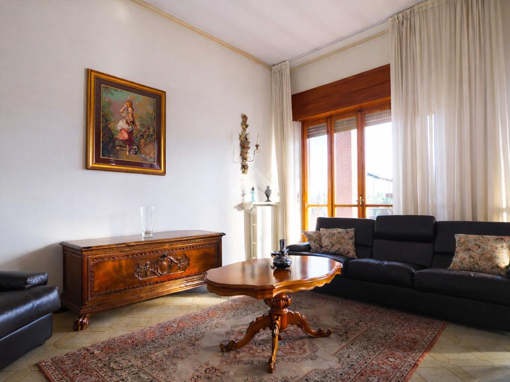 La zona notte, anch’essa sviluppata sullo stesso livello, è composta da due ampie e luminose camere da letto con pavimenti in parquet. Il piano è servito da due bagni finestrati, uno con vasca e uno con doccia.