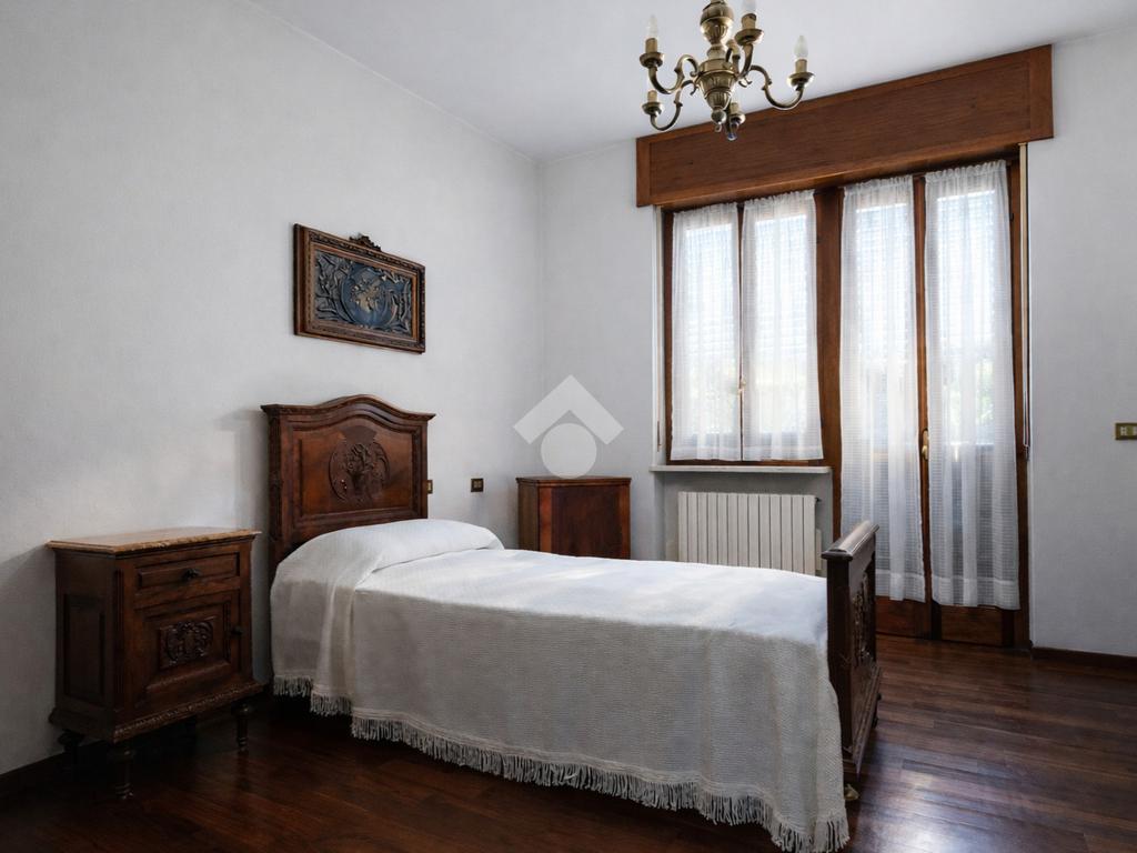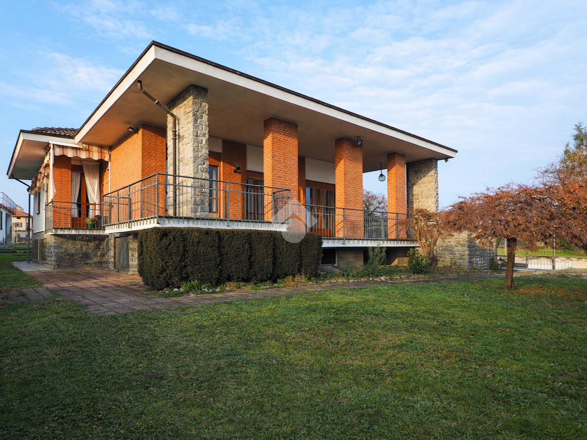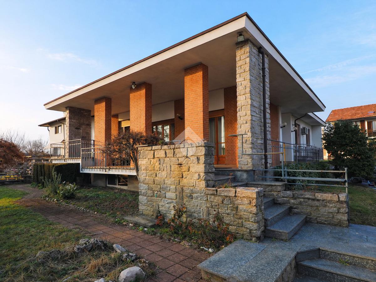 In tranquilla zona residenziale di Cossato, villa unifamiliare disposta su un unico livello, circondata da giardino privato piantumato e dotata di box auto triplo.