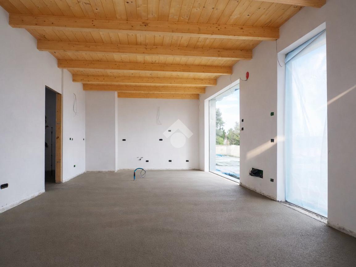 Se stai cercando una casa nuova, efficiente e con ampi spazi esterni, questa villa di testa di nuova costruzione rappresenta una soluzione ideale per chi desidera comfort, privacy e bassi consumi energetici. L’abitazione sviluppa una superficie di circa 96 mq ed è circondata da giardino privato di circa 300 mq, uno spazio perfetto per vivere l’esterno in ogni stagione. La zona esterna terrazzata collegata direttamente al soggiorno permette di creare una naturale continuità tra interno ed esterno, ideale per cene all’aperto, momenti di relax o per chi ama avere uno spazio verde da vivere quotidianamente. Gli ambienti interni sono progettati per garantire funzionalità e luminosità e comprendono zona giorno open space, tre camere da letto, due bagni e locale tecnico. Completano la proprietà un ampio box auto triplo di circa 49 mq e posto auto scoperto.