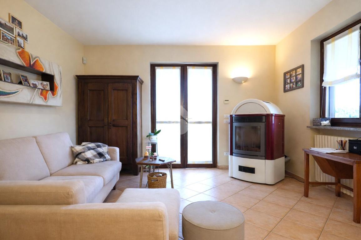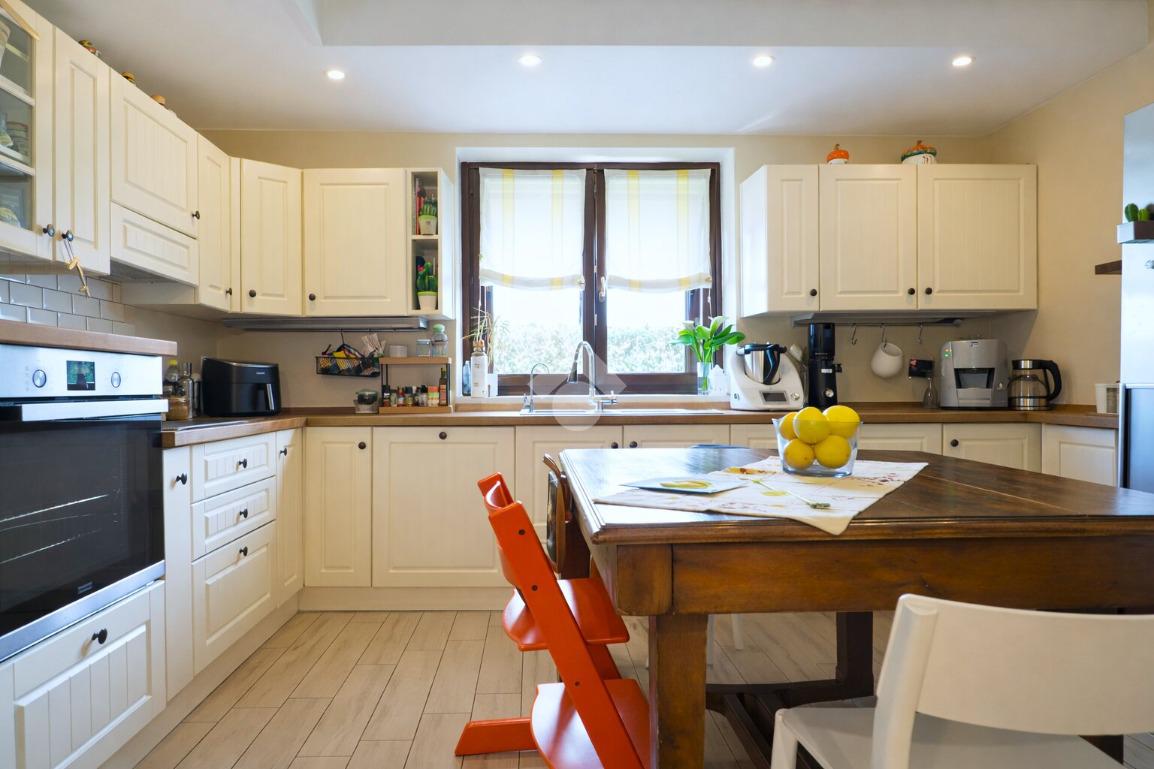 L’ingresso dell’abitazione si apre sulla zona giorno composta da un ampio e luminoso soggiorno e da una cucina abitabile. Sullo stesso piano è presente inoltre un bagno di servizio con zona lavanderia. La scala interna conduce al piano superiore dedicato alla zona notte, dove si trovano due camere da letto di generose dimensioni e un bagno dotato di vasca. Sul medesimo livello è presente anche un locale studio. Proseguendo tramite scala interna si accede al sottotetto, uno spazio sfruttabile come area ricreativa o ambiente polifunzionale. All’esterno l’immobile è circondato da giardino privato su tre lati, uno spazio ideale per vivere momenti all’aperto e garantire maggiore privacy alla proprietà. Completa la soluzione un doppio posto auto coperto. La casa è dotata di infissi con doppi vetri, riscaldamento alimentato a GPL e stufa a pellet, elementi che contribuiscono a garantire comfort abitativo e gestione efficiente dei consumi.