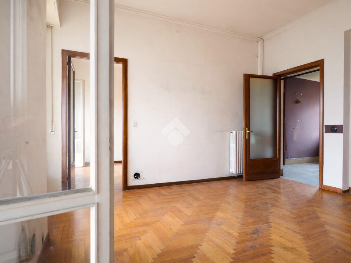 Dal soggiorno si accede a una camera con bagno privato, attualmente parzialmente demolito, che rappresenta un’interessante opportunità di personalizzazione, e a un’ulteriore camera da letto, accessibile anche dal disimpegno della zona notte. Questo spazio, ampio e ben sfruttabile, si presta perfettamente alla creazione di una zona lettura.