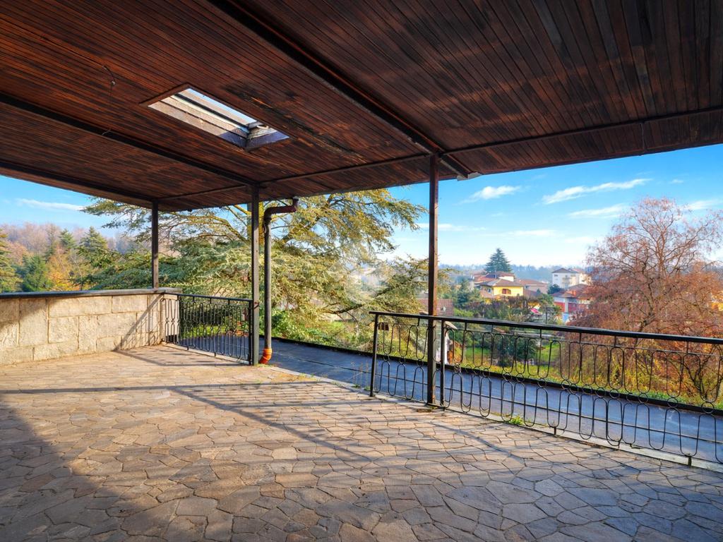 In posizione tranquilla e riservata, proponiamo in vendita un appartamento al primo piano in elegante villa trifamiliare, inserito in un contesto verde con giardino in comune, ampio terrazzo, cortile privato e box auto singolo.